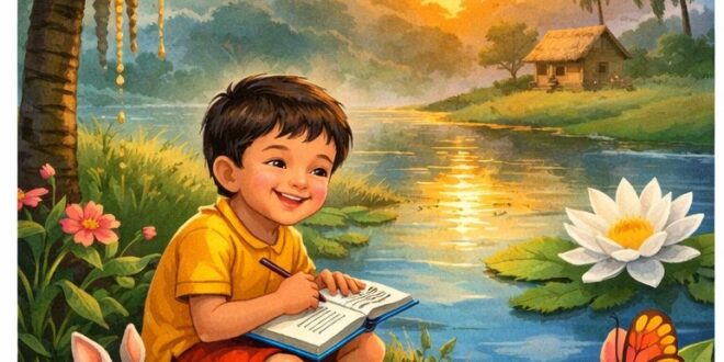খাতায় ছবি এঁকে।